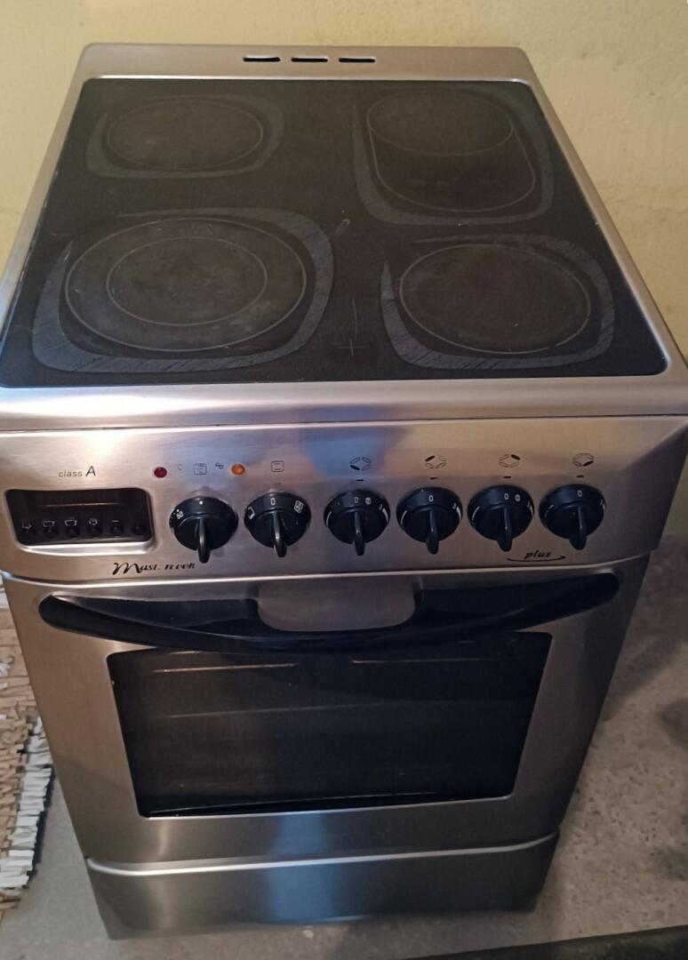 Sprzedam kuchenkę elektryczną czteropalnikową w kolorze inox/srebrnym. Urządzenie w pełni sprawne ? wszystkie pola grzewcze działają prawidłowo, piekarnik również działa bez zarzutu. Wymiary: 50 cm x 60 cm. Wyposażenie: 4 pola grzewcze (płyta elektryczna), sprawny piekarnik z szybą, pokrętła do regulacji temperatury. Stan widoczny na zdjęciach. Zasilanie: standardowe (kuchenka działa na prąd). U mnie była podłączona pod tzw. ?siłę?, czyli instalację trójfazową.
