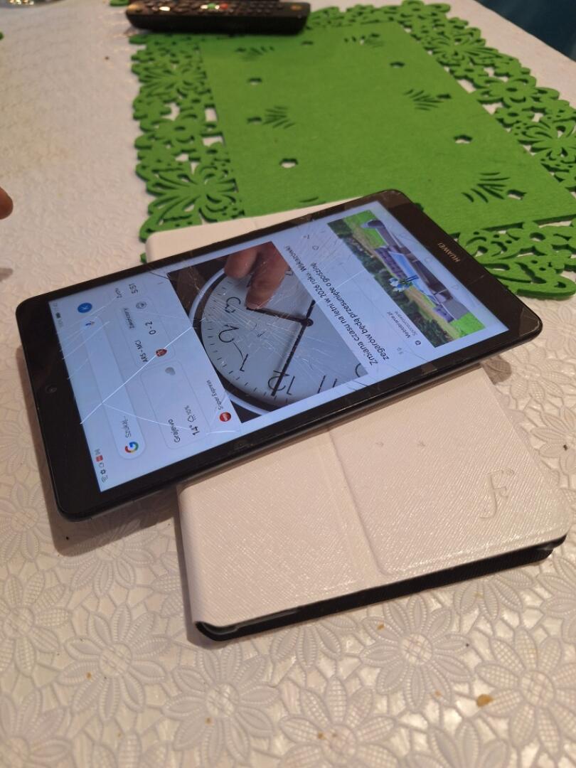 Sprzedam sprawny uzywany Tablet marki Huawei MediaPad M5 Lite, tablet ma zbity ekranik ale dziala w kazdym miejscu. W komplecie etui,pudelko,ksiazeczki, naklejone szklo na wyswietlacz.
